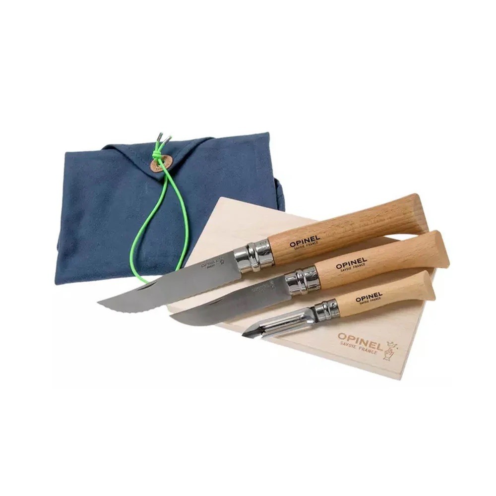 Opinel Nomad je kompaktní cestovní sada nože, škrabky, prkénka a utěrky navržená pro pikniky, turistiku a cestování.