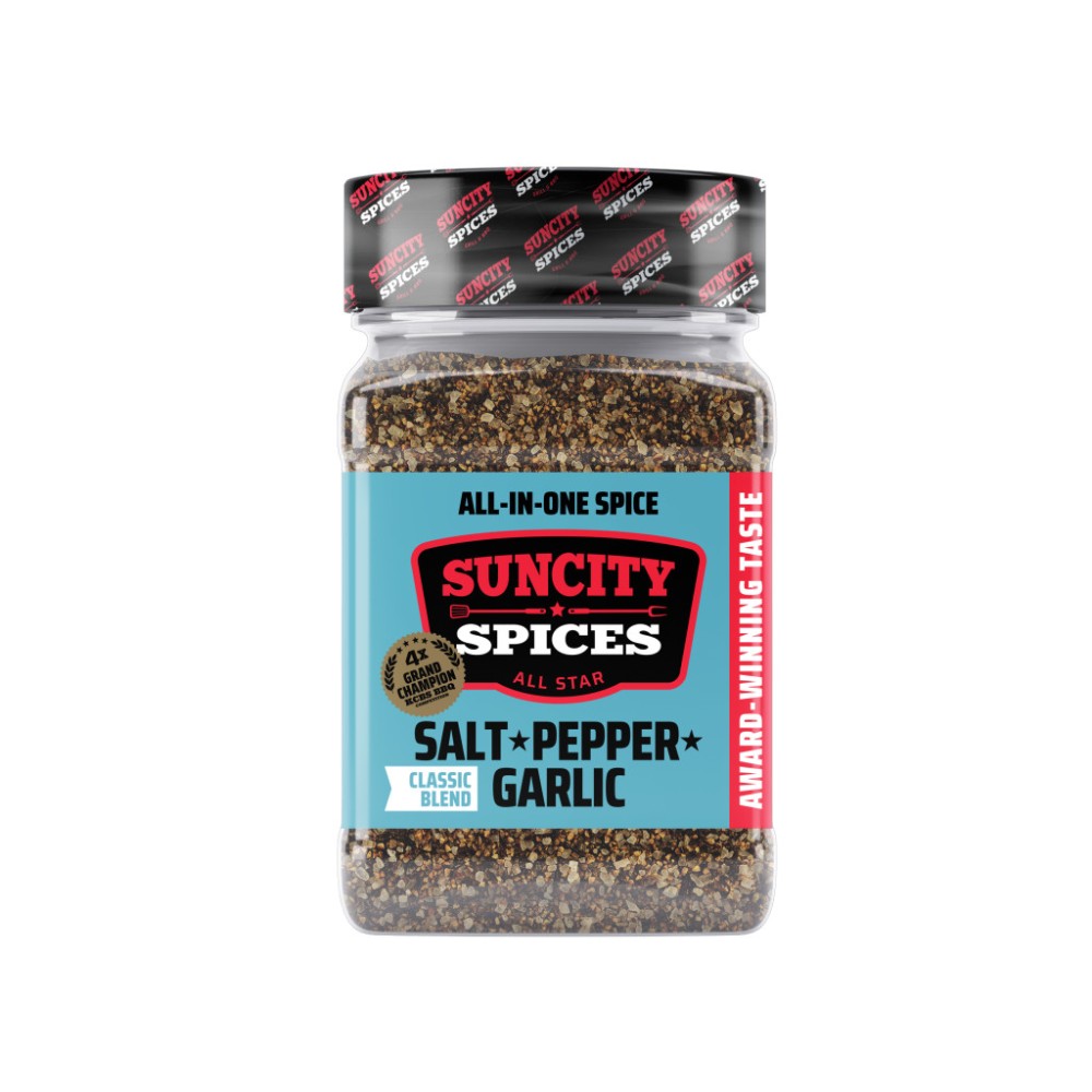 SPG je svatá trojice grilování - rovným dílem sůl, pepř a česnek v jedné směsi. SPG vychází z klasického amerického grilování a je navržena tak, aby v dokonalé harmonii podtrhla přirozenou chuť masa, aniž by ji přebila. Je neuvěřitelně univerzální, funguje skvěle jako základní vrstva pro další ruby nebo koření (takzvaný layering koření), ale i samostatně na steaky, kuřecí maso, vepřové nebo grilovanou zeleninu. Čistá, úderná chuť bez zbytečných složitostí - SPG je zkrátka nepostradatelný základ vaší grilovací sezóny, který využijete třeba i v kuchyni na vajíčka nebo na zeleninu. SunCity do svého SPG přidává ještě i špetku dalších koření pro perfektní rovnováhu a bohatší chuť.