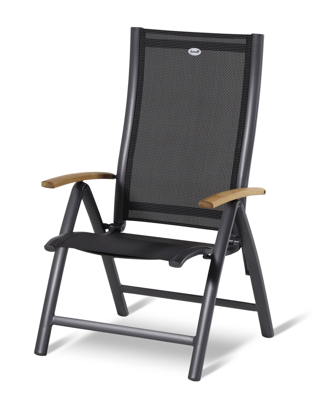 Tato varianta židle Belcampo má pevnou hliníkovou konstrukci s područkami z týkového dřeva a je skládací a polohovatelná. Perfektně ladí například s jídelními stoly Hartman z řady Concept.