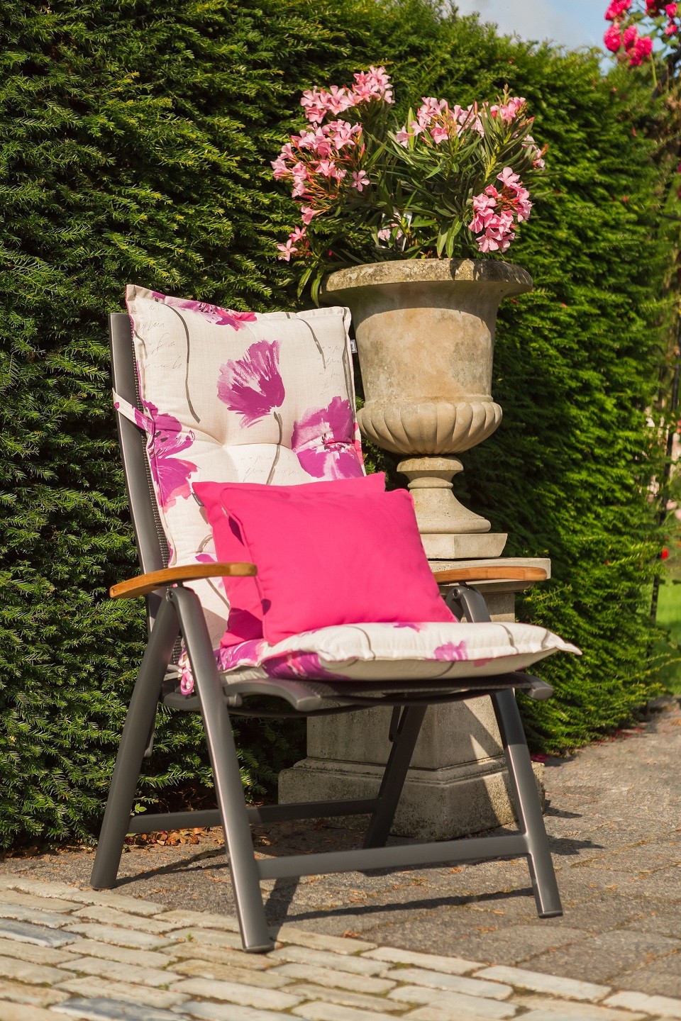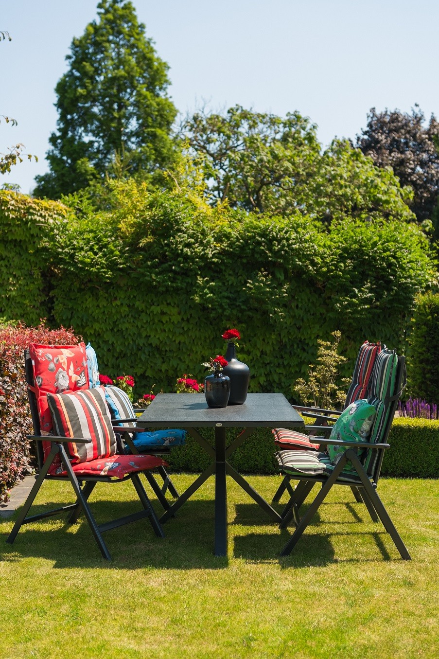 Židle Belcampo teak jsou nabízeny v černé barvě hliníkové konstrukce s týkovými područkami, ale pokud si je budete přát dále barevně oživit, lze k nim dokoupit přímo určené polštáře a polstry nejrůznějších barev, takže budou ladit s jakoukoliv zahradnou či terasou. Polštáře také ještě zvětší komfort těchto židlí. Velikou výhodou jídelních venkovních židlí Belcampo je dostatečná šířka sedacího prostoru, díky tomu si na židli nikdy nebudete připadat nijak sevření a budete si moci udělat skutečné pohodlí. Židle je také díky tomu vhodná i pro silnější postavy.