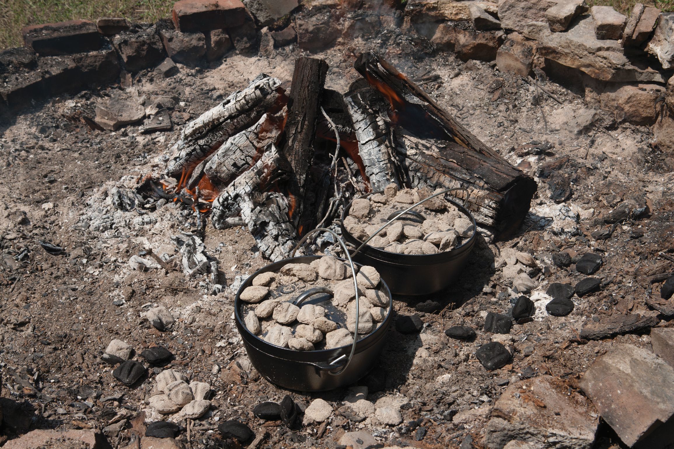 - hrnec s nožičkami - pod hrnec lze dobře umístit rozpálené uhlíky či dřevo