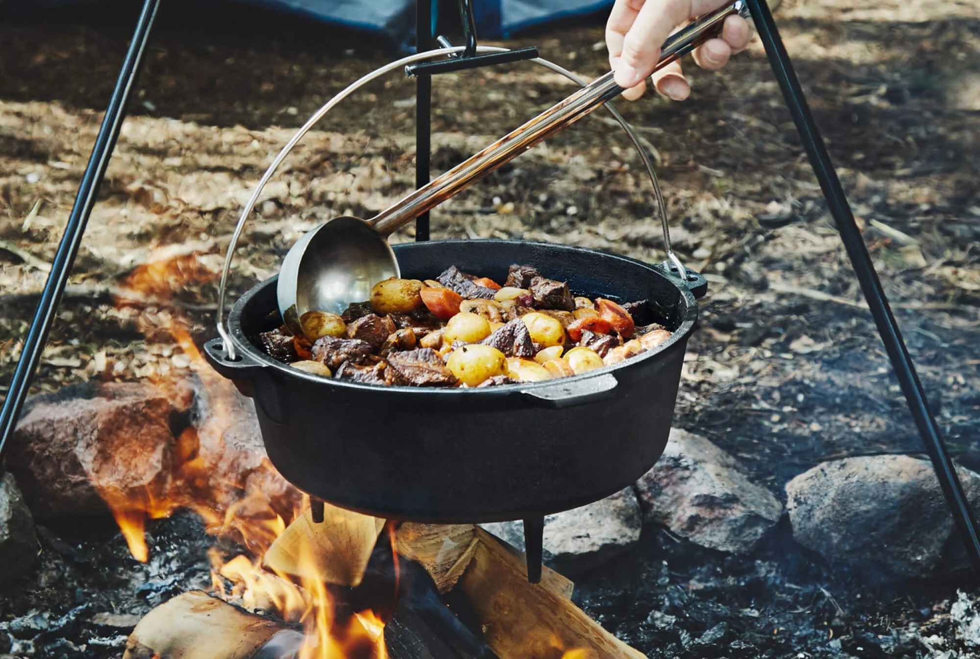 Aby bylo možné použít Lodge litinový hrnec na oheň, bývají většinou vybaveny drátem pro zavěšení na trojnožku. Není lepší způsob, jak si udělat tradiční kotlíkový guláš :) Litinový hrnec je ale samozřejmě poměrně univerzální – můžete v něm připravovat maso na všechny způsoby, péct, smažit či dusit, nebo můžete použít hrnec na pečení chleba v troubě doma i venku na ohni.