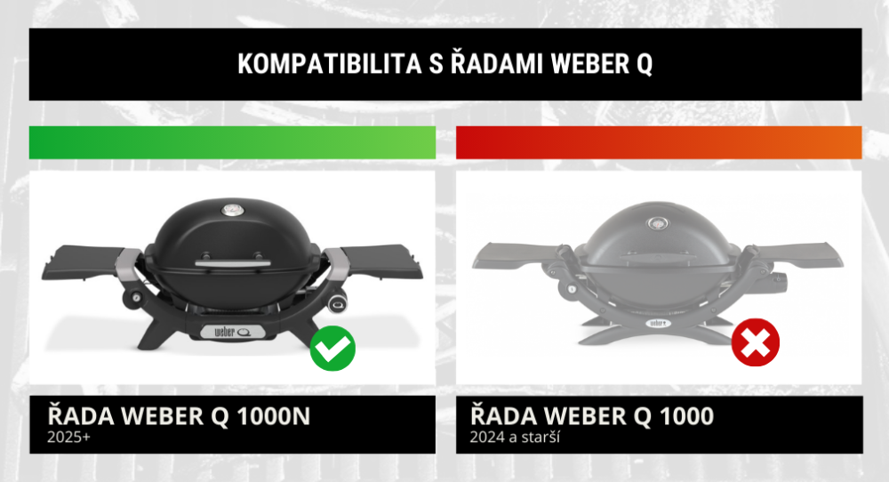 Pozor, není určena pro plynové grily roku výroby 2024 a starší - ty mají trošku jiný tvar a obal by k nim nepasoval. Jedná se o grily s označením bez "N" na konci (tedy například Weber Q 1200). Není určen ani pro elektrické grily Weber Q 1400.