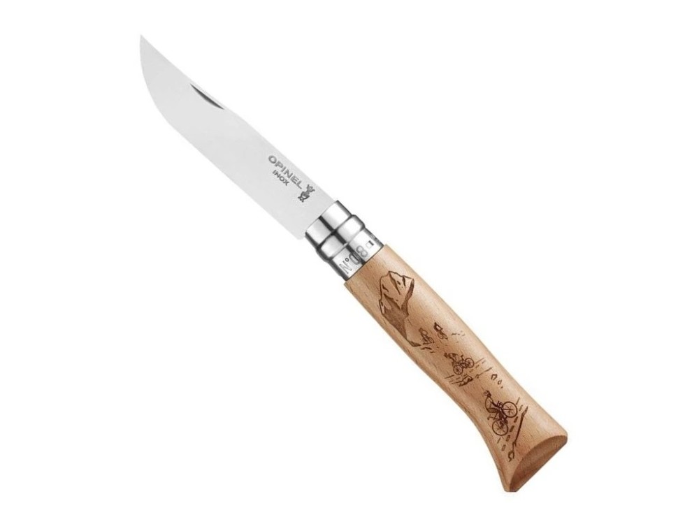 Speciální sportovní edice nožů Opinel N°08 oslavuje vášeň pro outdoor aktivity. Na bukové rukojeti jsou laserem vypáleny detailní motivy různých sportů - sportovní lezení (climbing), cyklistika (velo) a lyžování (ski).
